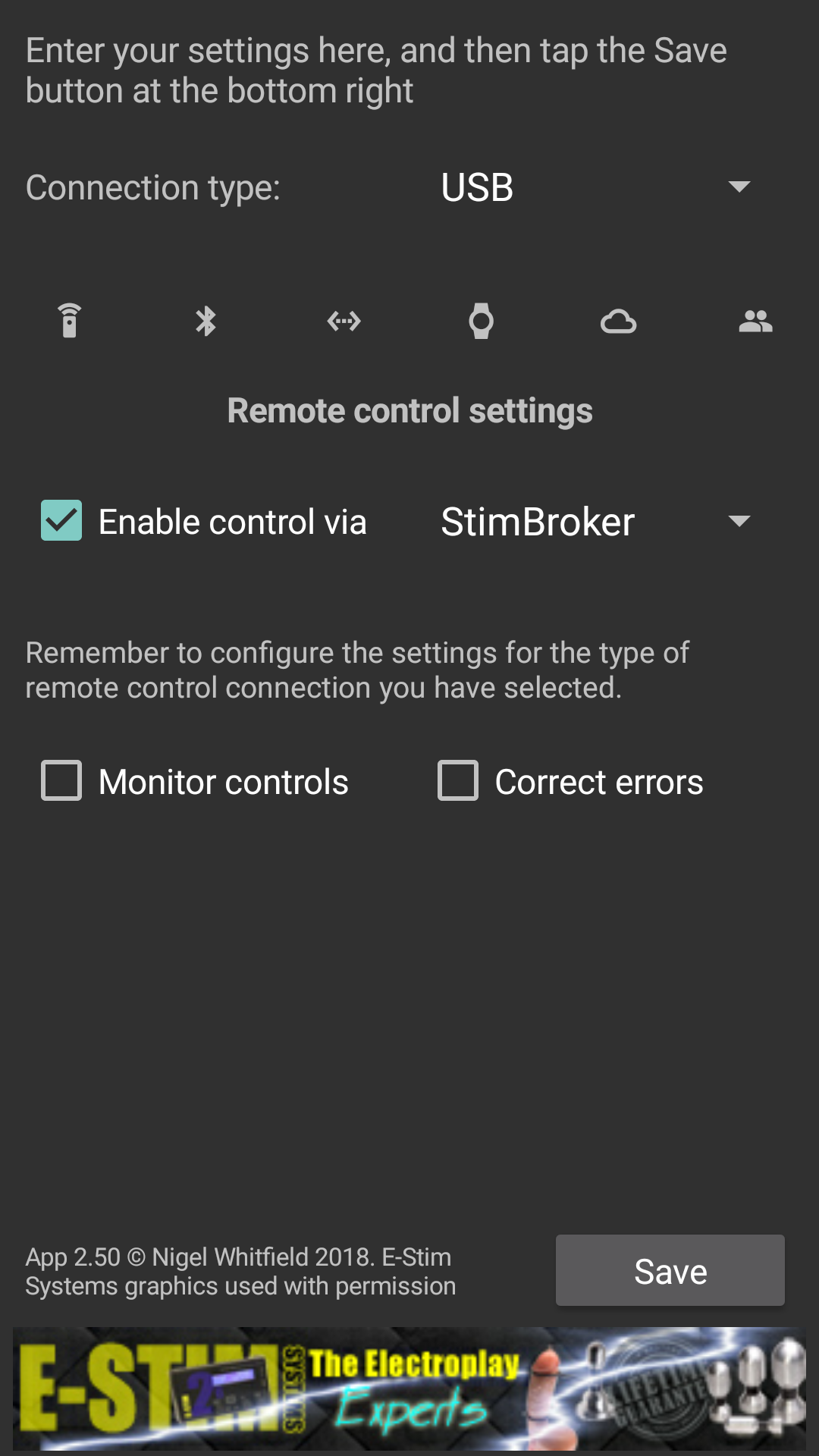 estim4android is a counterpart to my Estim Control/Server (ECS) app for desktop PCs. It can run on an Android table or phone, allowing you either to control a 2B power box connected to it, or to control someone else's remotely over the internet. Here's a quick summary of what it can offer: