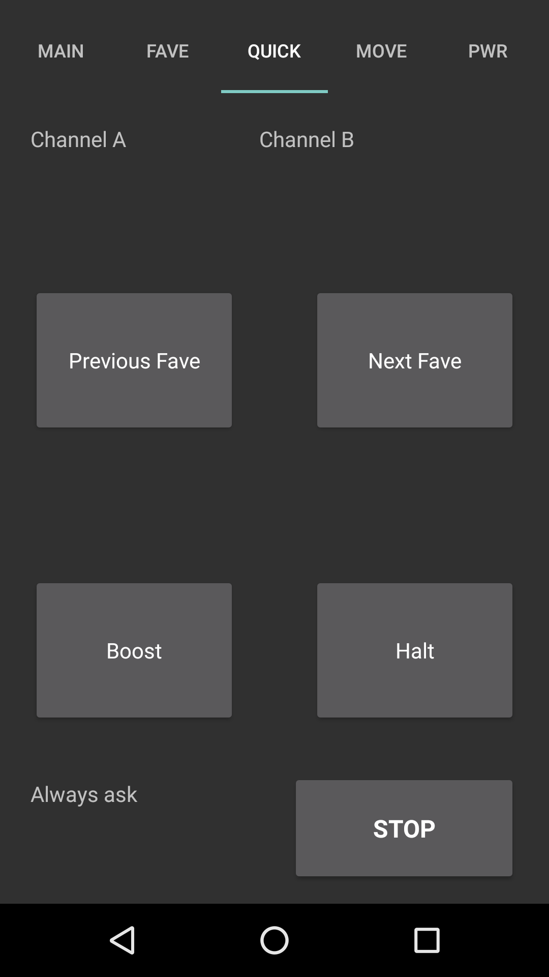 If it is set to Always ask then before a favourite is launched, you'll been presented with a list of the choices on the menu. If you pre-select an option, that will be used for all favourites in future, until you change it again. Options range from a short jolt, to taking ten minutes to reach the specified settings.